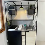 1-room The Green Nest - Pool & Garden 5 Minutes From Garda apartment provides an equipped kitchenette with a fridge, a toaster, and a cooktop.
